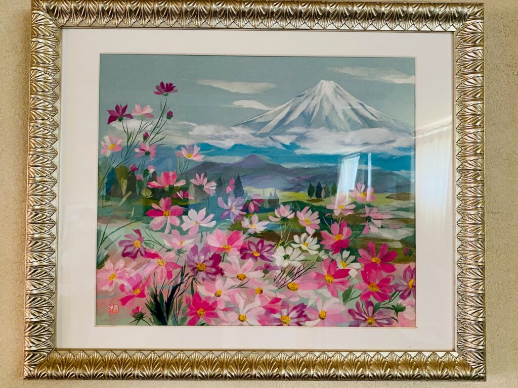 当院に、患者さんがちぎり絵で描いてくださった、コスモスの絵があります。 手間をかけて作られていて、素晴らしい作品です。